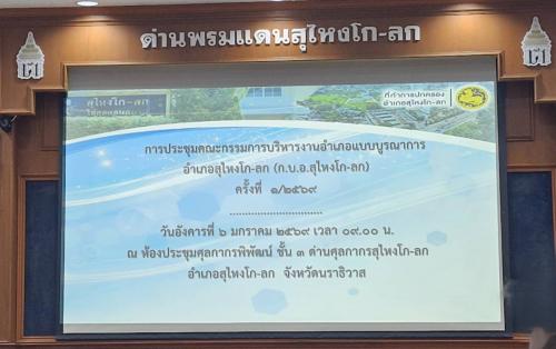 สำนักงานพัฒนาชุมชนอำเภอสุไหงโก-ลก โดยนางสาวเกวลิน คงทอง พัฒนาการอำเภอสุไหงโก-ลก ประชุมกำนันผู้ใหญ่บ้านฯ ครั้งที่ 1/2569 โดยนายซูปียัน