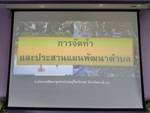 สำนักงานพัฒนาชุมชนอำเภอสุไหงโก-ลก โดยนางสาวเกวลิน คงทอง พัฒนาการอำเภอสุไหงโก-ลก พร้อมด้วยเจ้าหน้าที่พัฒนาชุมชนอำเภอ ดำเนินโครงการจัดทำและประสานแผนพัฒนาตำบล มีคณะกรรมการ ศอช.ต. ทีมปฏิบัติการตำบลและคณะกรรมการหมู่บ้านร่วมประชุม เพื่อบูรณาการแผนพัฒนาตำบล โดยร่วมกันวิเคราะห์ศักยภาพ ปัญหา กำหนดแนวทาง ทิศทาง เป้าหมาย โครงการ/กิจกรรมในการพัฒนาชุมชนแก้ไขปัญหาให้เกิดประโยชน์สูงสุดต่อประชาชน รวมทั้งส่งเสริมการใช้แผนพัฒนาหมู่บ้านและแผนพัฒนาตำบลเป็นเครื่องมือในการบริหารจัดการชุมชน, วางแนวทางโครงการ/กิจกรรมที่สอดคล้องกับปัญหา-ความต้องการของประชาชนเกิดการมีส่วนร่วมและการ บูรณาการกับทุกภาคส่วนอย่างเป็นรูปธรรม